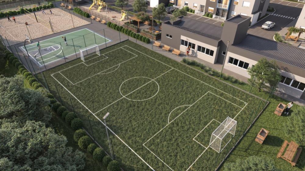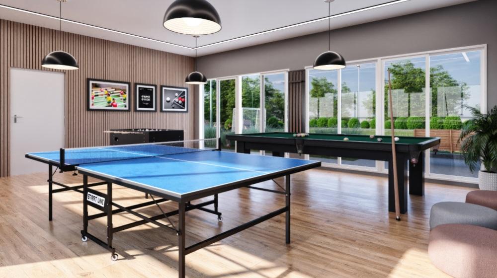 1) Pórtico de acesso para veículos via portão eletrônico; Acesso digital de pedestres via tag; Interfonia via smartphone; Guarita; 2) Espaço New com 2 salões de festas; Espaço beleza; Mercado autônomo; Lavanderia compartilhada; Coworking; Sala de Reuniões; Espaço Kid;. 3) Espaço luau; ; 4) Bicicletário e bikesharing; 5) Espaço pet; 6) Espaços gourmet com churrasqueira; 7) Playground kids e baby; 8) Quadra de vôlei; 9) Quadra de beach tennis; 10) Quadra de basquete half court; 11) Campo de Futebol; 12) Espaço zen; 13) Sala de jogos e academia; 14) Churrasqueira ao ar livre; 15) Piscina Infantil; 16) Piscina adulto; 17) Quiosque gourmet; 18) Pista de caminhada; 19) Espaço piquenique; 20) Pomar e trilha ecológica; 21) Painéis solares; 22) Vagas de estacionamento para Visitantes; Parada Uber; Carga e descarga; Parada rápida e carregamento de carro elétrico.